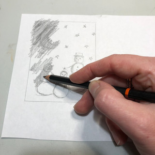I then put the graphite side down against my block, tape it in place and trace over the traced drawing. The graphite will transfer wherever you press down with your pencil. Once I have my drawing transferred, I usually go back with a soft pencil and do a little bit of editing or fine tuning directly on the block.