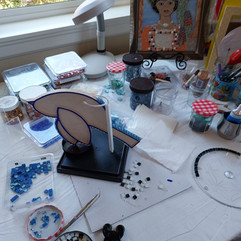 "How long does it take?" is one of the most often asked question I receive about my mosaic art. There are many ways to answer that question. My whole life is one, all life experiences are part of any artist 's process. I admit I don't keep track of the hours I put into each piece. I work almost every day a few hours at a time, a few times a day. Smaller pieces take days, larger and more complex take weeks and weeks and.....